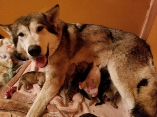 【ハイブリッドウルフドッグbabyの里親&オーナーさんを募集しています❗】2月7日の夜中から始まった、ハイブリットウルフドッグの汕(サン)の出産ざっくりとしたエコーでは、 4匹と聞いていたので、その時は4匹の募集をしていました。 が、蓋を開けてみる…